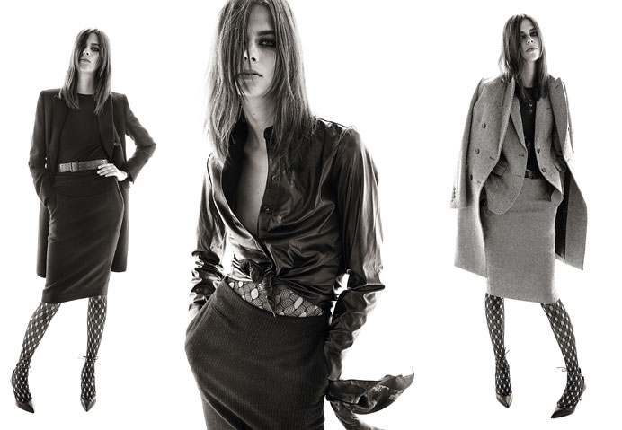 Neben Pullovern aus Kaschmir, Blusen und Kleidern aus feiner Seide und dekorativer Spitze, enthält die Kollektion auch Mäntel aus Faux Fur, umspielende Wollröcke und dazu passende Tuxedo Blazer.